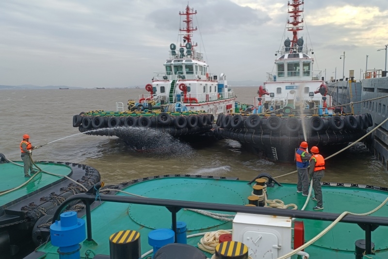 为进一步提升快速处置水上突发事件和抢险救灾应急救援能力,11月18日,港服公司组织开展船岸消防联合演习,以实战筑牢水上消防防线。“温消拖17”、“温拖8”、“温拖3”参与了此次演练。